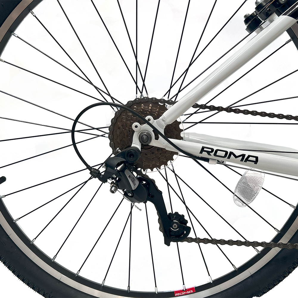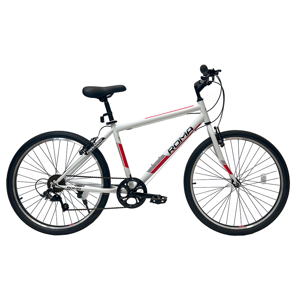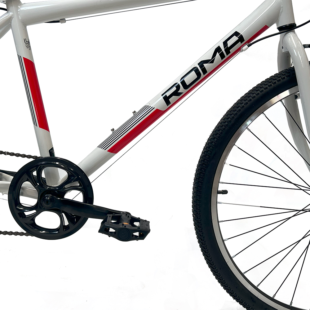 Bicicleta urbana resistente y cómoda, equipada con cuadro de acero Hi-Ten y 21 velocidades para un manejo versátil. Incorpora frenos V-Brake de aluminio, llantas de aluminio de doble pared y shifters Grip Shift para cambios simples y precisos. Su manubrio de doble altura y asiento sport con gel brindan una posición cómoda, ideal para el uso diario en la ciudad.